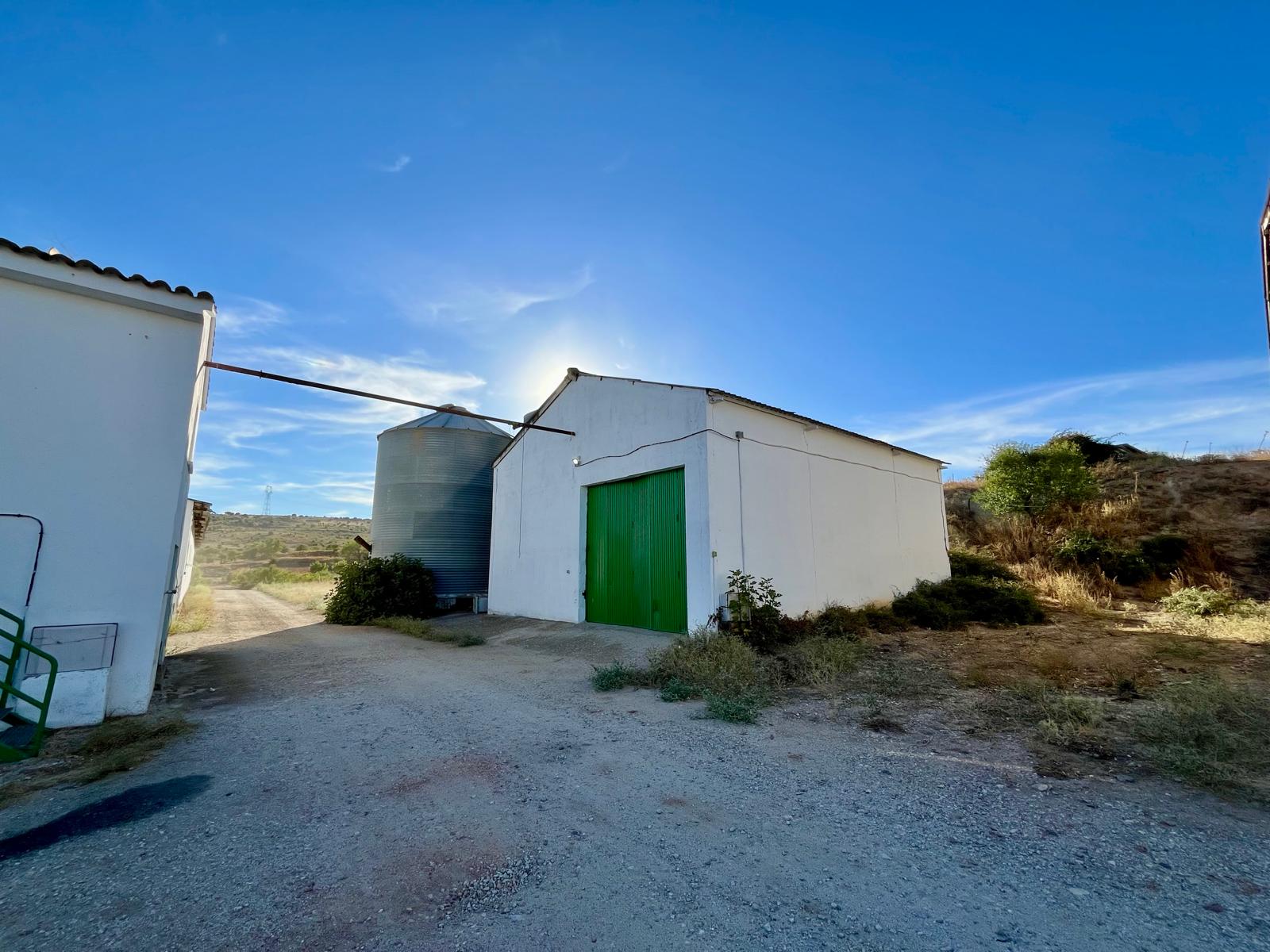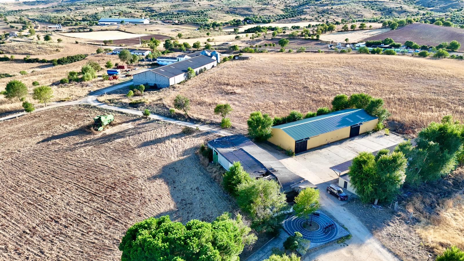 La propiedad dispone de una vivienda principal de 600 m² con 5 dormitorios, amplias zonas de estar, piscina, bodega y espacios exteriores, además de una casa para guardeses. Incluye múltiples naves y edificaciones (más de 2.800 m² en total), adaptadas tanto a uso residencial como agrícola o logístico.